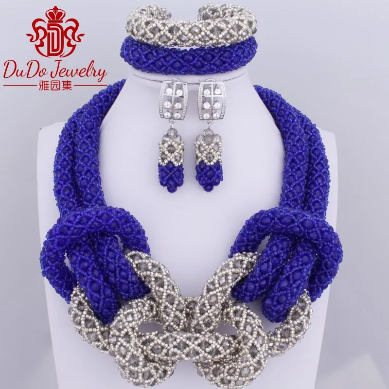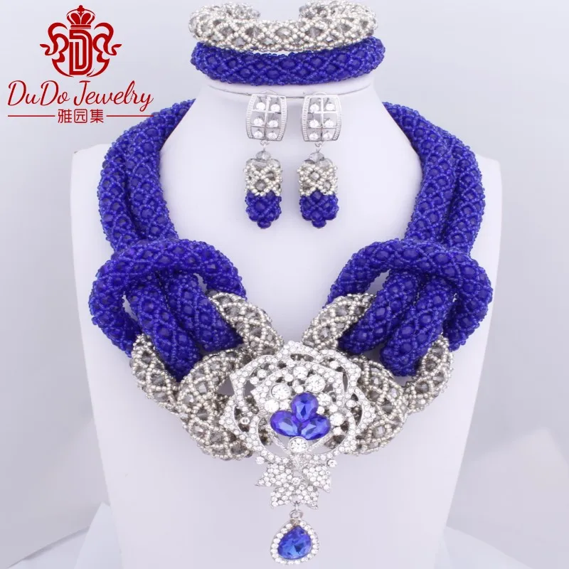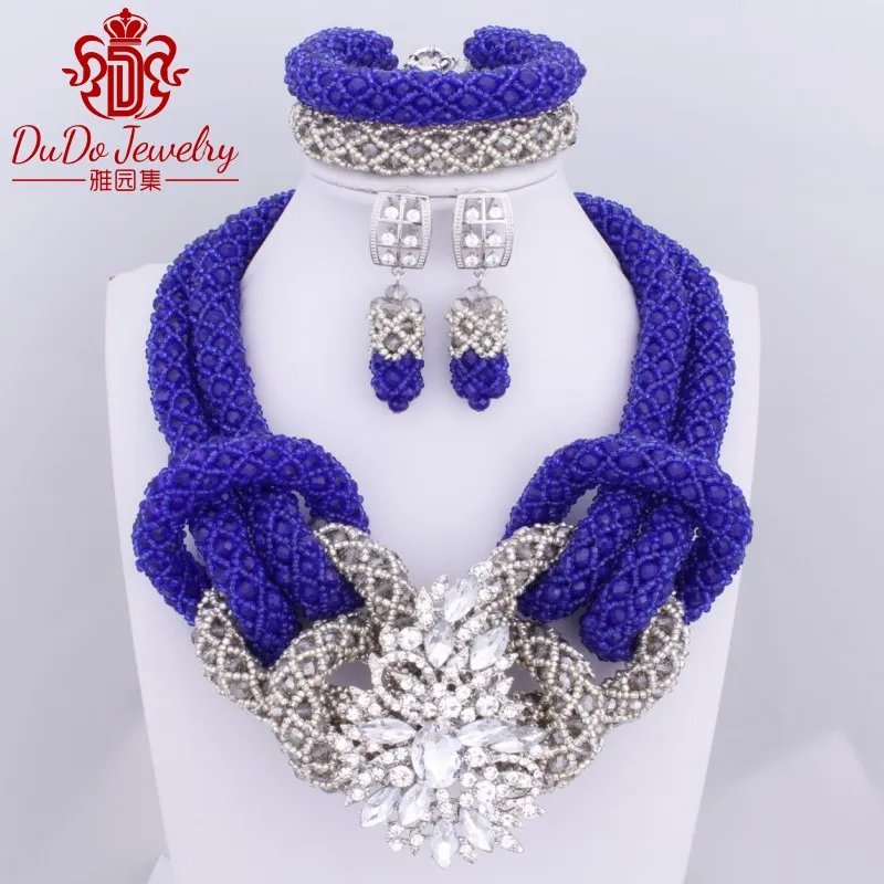 2017 Royal Blue Grey Owl Animal Jewelry Set Fashion Necklace Set Dubai Women Jewelry African Nigerian Wedding Beads Hot Sale
