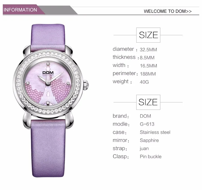 DOM women watches luxury brand waterproof style quartz leather watch sapphire crystal reloj hombre marca de lujo G-613GL-6M