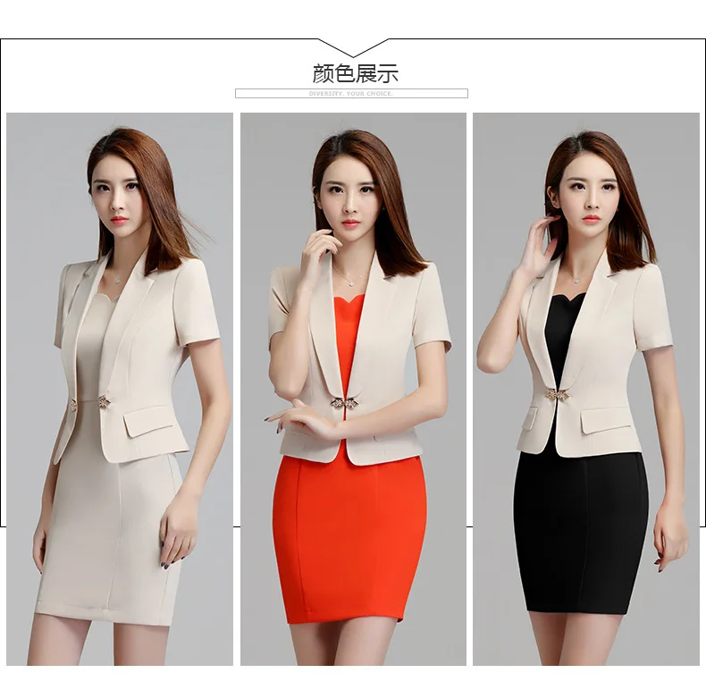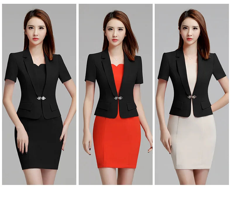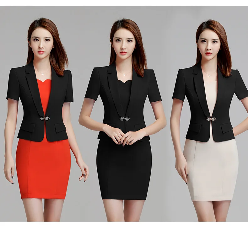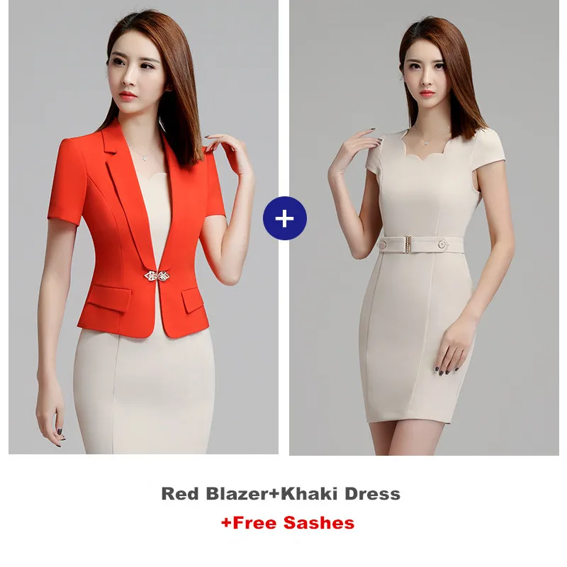 Fmasuth Women Summer Blazer Dress Suits Elegant Short Sleeve Blazer and Short Sleeve Dress Ladies Office Suit Set ow0302