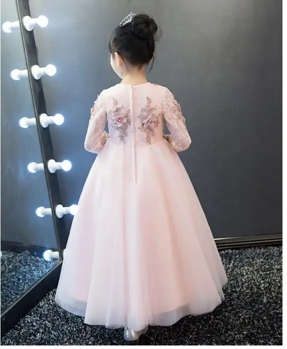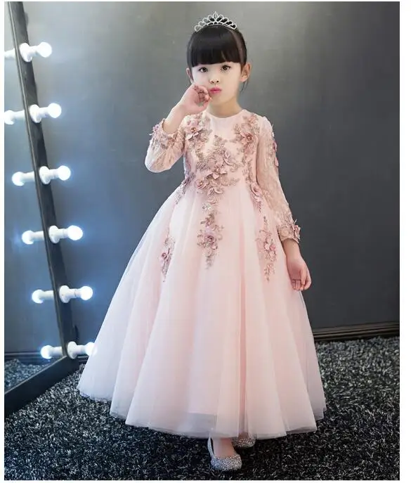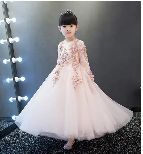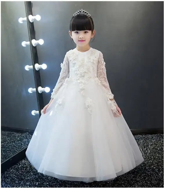 Girls Pageant Long Formal Dresses 2017 Autumn Winter Long Sleeve Gauze Gowns Flowers Girls Princess Tutu Dress Kids Party Wedding Dresses Dancewear 3-12Y , the dress have size:100-110-120-130-140-150-160 all in stock , if you would like to buy big size please under the order make which size.