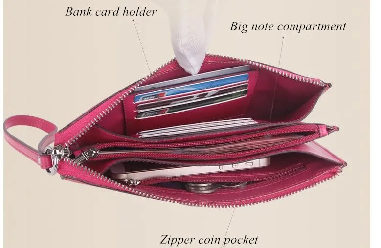 GENMEO New Arrival Real Leather Phone Pocket Wallets Women Genuine Leather Coin Purse 2017 Sexy Ladies Card Holders Money Bag
