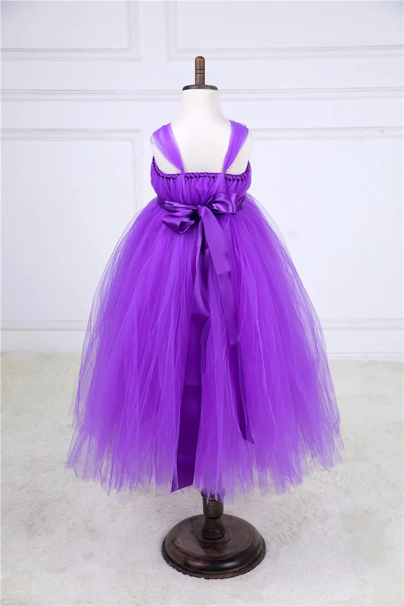 Purple,Gray Flower Girl Dresses Cute Kids Party Pageant Wedding Bridesmaid Bridal Tulle Tutu Dresses Princess Ball Gown 2-14 Y